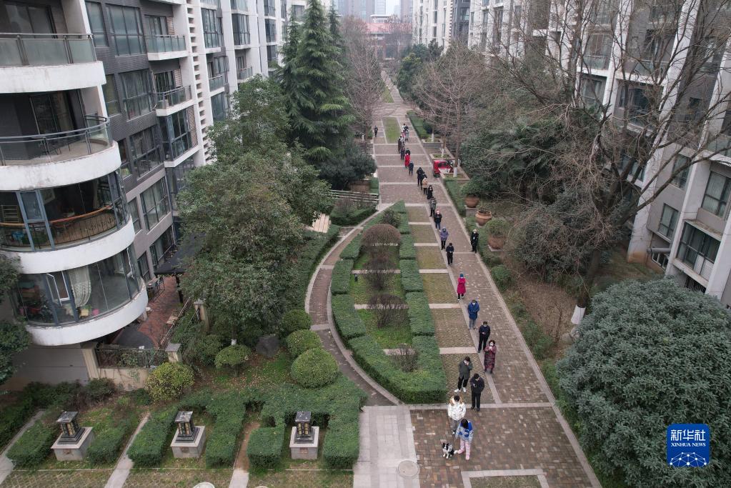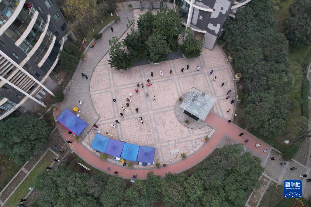 12月23日,在西安一小區(qū),居民排隊進行核酸檢測(無人機照片)。新華社記者 邵瑞 攝
