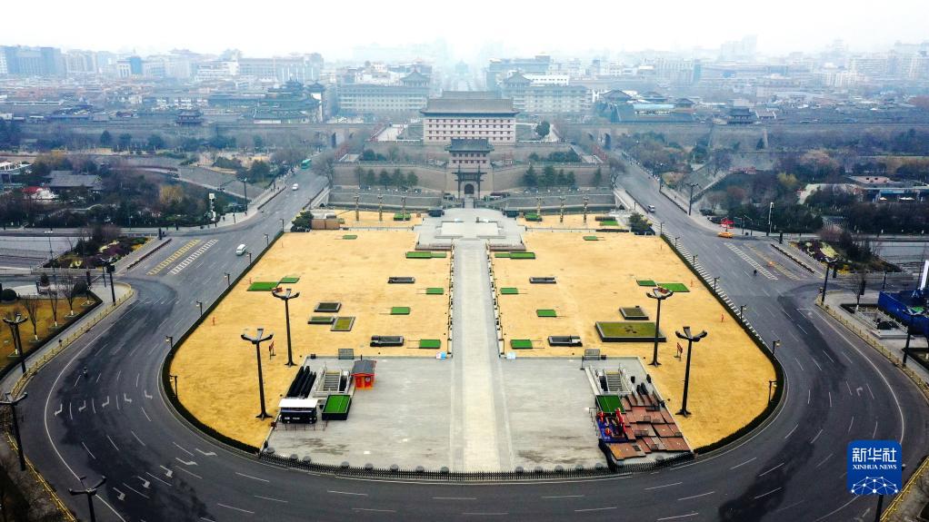 12月23日拍攝的西安永寧門外盤道(無人機照片)。新華社記者 劉瀟 攝
