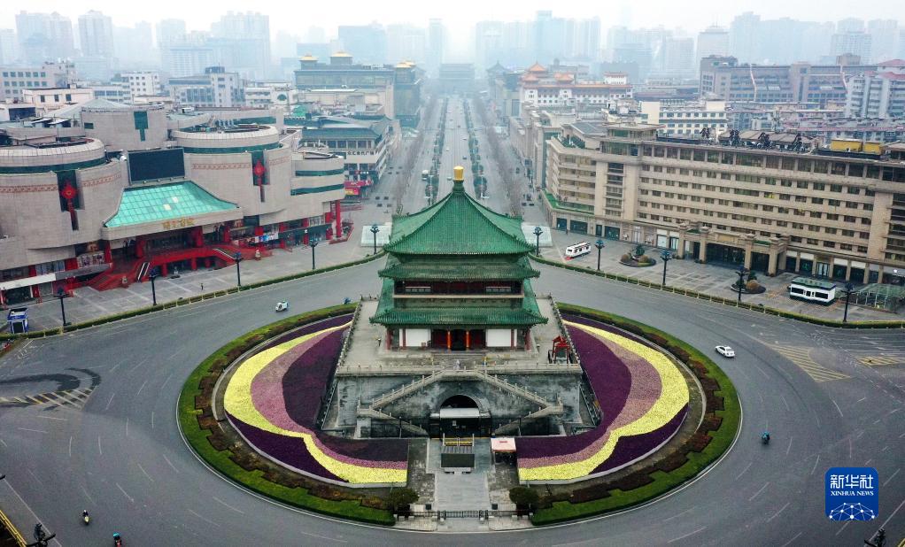12月23日拍攝的西安鐘樓(無人機照片)。新華社記者 劉瀟 攝