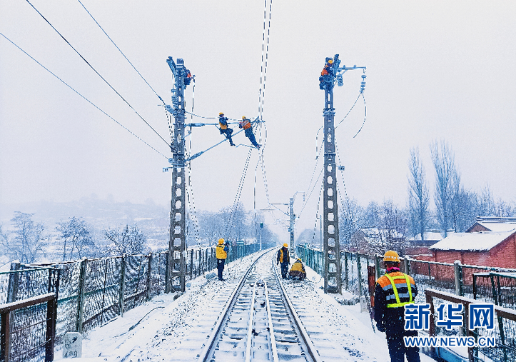 12月25日,在寶雞至中衛(wèi)鐵路線上,鐵路職工加強(qiáng)線路供電設(shè)備檢修,為電煤運輸提供保障。張曉威 攝