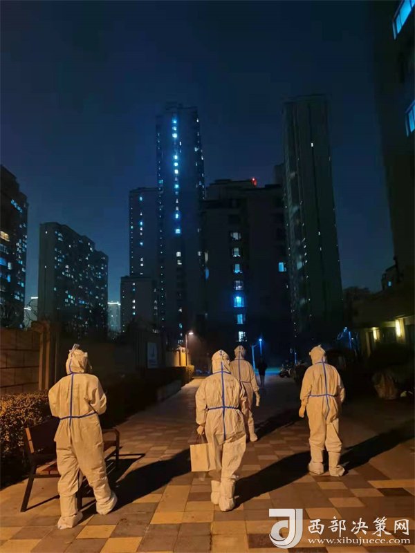 正當(dāng)隊(duì)員們準(zhǔn)備修整一天時(shí),新的命令到了,要求醫(yī)療隊(duì)安排300名隊(duì)員支援雁塔區(qū)核酸采集工作,大家毫無怨言,坐上了趕赴雁塔區(qū)的大巴。這是最不尋常的一天,醫(yī)療隊(duì)承擔(dān)了雁塔區(qū)近10個(gè)居民區(qū)的核酸采樣任務(wù),且大部分都屬于封控區(qū)。核算采樣需上門采集,風(fēng)險(xiǎn)大、難度高,因?yàn)樾畔⒉杉O(shè)備無法上樓,只能依靠人工信息錄入,隊(duì)員們身穿防護(hù)服,在操作極其困難的情況下做到了不漏一戶,不落一人。采集結(jié)束已是25日凌晨1點(diǎn),來自漢臺(tái)區(qū)的余晗和趙凌最后的采集任務(wù)已是凌晨2點(diǎn),此時(shí)的千年古都正飄落著冬日的雪花。這次入戶采集共完成49081人次。
