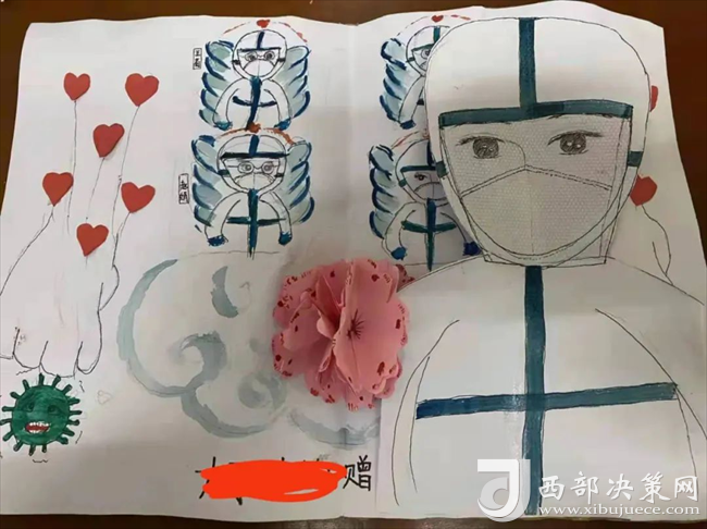 12月13日23時,第一例患者收住隔離病區(qū)?;純喝朐簳r全身感染,癥狀重,精神狀況差,哭鬧拒絕吃藥。為了安撫孩子焦慮情緒,隔離病區(qū)醫(yī)護人員輪流進入病房,陪患兒玩耍,科室安排專人,購買孩子需要的跳繩、皮筋、折紙、水果等生活用品,功夫不負有心人,經(jīng)過醫(yī)護人員耐心、細心地陪伴,孩子的情緒逐漸平靜下來,并積極配合治療,患兒最終診斷為“急性化膿性扁桃體炎、流行性感冒、急性支氣管炎”。三天后,體溫恢復(fù)正常,精神狀況明顯好轉(zhuǎn)。12月22日,患兒痊愈出院,為了表達感激之情,她動手為隔離病區(qū)工作人員送上自己精心做的一幅手工畫,向科室醫(yī)護人員敬獻一面錦旗。
