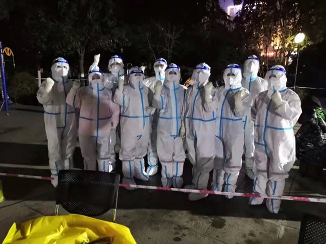 當所有工作結(jié)束后已經(jīng)是凌晨兩點,走出樓門抬頭只能看到夜色中飄繞的云霧。一陣寒風吹過,困意、寒意、饑餓席卷而來,身前靜謐的路燈,與身后的萬家燈火形成了鮮明對比,此刻的他們別無他想,只有一個信念:一定要堅守住這片陣地。