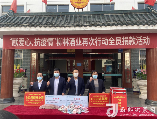 西部決策網(wǎng)訊(韓宗憲)1月10日上午,陜西柳林酒業(yè)集團(tuán)舉辦“獻(xiàn)愛心 抗疫情”全員捐款活動(dòng)。中共鳳翔區(qū)委副書記馬少輝、鳳翔區(qū)委常委、宣傳部部長賈亞斌,陜西柳林酒業(yè)集團(tuán)總經(jīng)理柳林、常務(wù)副總周峰、總工程師胡建祥、行政副總呂廣田、財(cái)務(wù)總監(jiān)楊永忠出席活動(dòng)。