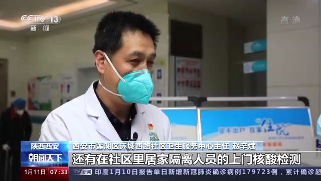 西安市蓮湖區(qū)環(huán)城西路社區(qū)衛(wèi)生服務中心主任 趙辛斌:有全面核酸檢測,有隔離酒店,還有在社區(qū)里居家隔離人員的上門核酸檢測,還有這些人的日常健康監(jiān)測,還有出現一些其他的,比如說有管控區(qū)的話,我們還要去消殺,或者社區(qū)日常消殺的指導,還有一些轄區(qū)群眾的送醫(yī)送藥。