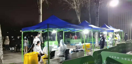 檢測(cè)過(guò)程中,所有檢測(cè)人員都身著防護(hù)服,為了節(jié)約醫(yī)療物資,避免讓大家在寒風(fēng)中等待,志愿者幾乎不吃飯、不喝水,連續(xù)工作直到檢測(cè)結(jié)束。也正因?yàn)橛辛怂麄兊膱?jiān)守,西電疫情防控工作才有了堅(jiān)強(qiáng)保障。