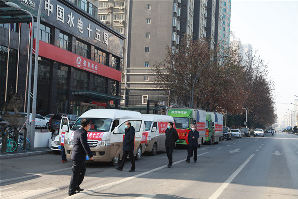 西部決策網(wǎng)訊 “出發(fā)!”1月11日下午14:00,隨著公司黨委書記、董事長(zhǎng)梁向峰一聲令下,滿載 3000斤面粉、3000斤大米、 1000斤食用油、1000斤各類蔬菜、500斤大肉、200斤牛肉、200斤羊肉、400箱牛奶酸奶、500斤速凍水餃、1000箱衛(wèi)生紙、2200瓶洗發(fā)露、2200袋洗衣液等抗疫生活物資的8輛貨車,再次從中國(guó)水電十五局水電大廈樓前出發(fā),送往陜西職業(yè)技術(shù)學(xué)院。