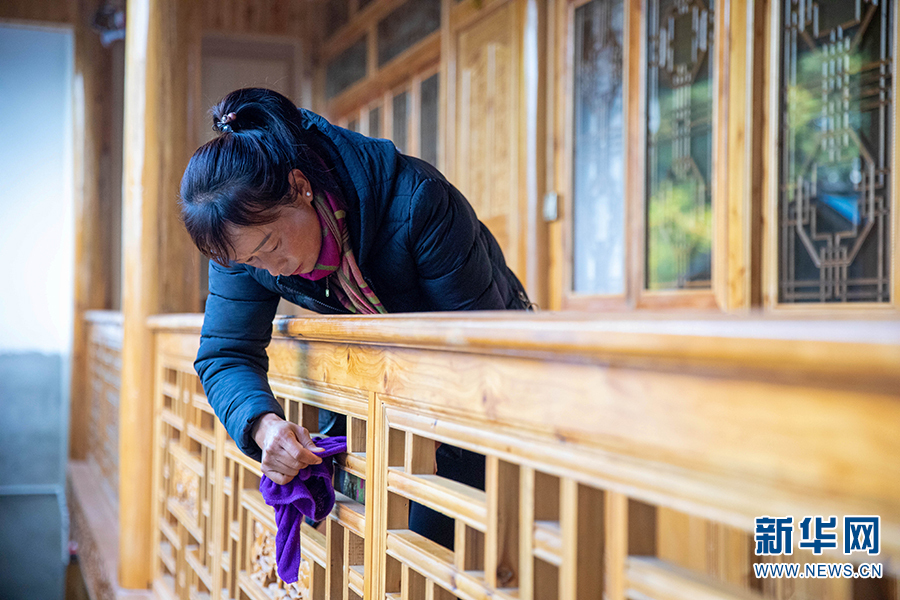 羅愛艷打掃客棧(攝于2021年12月4日)。新華網 趙普凡 攝