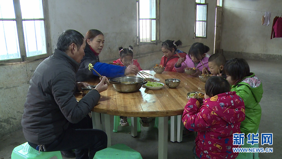 圖為王樸夫妻與孩子們一同吃午飯。新華網(wǎng)發(fā)(吳建華 攝)