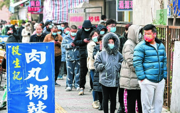 ▲1月20日,市民在西安市未央?yún)^(qū)一家小吃店前排隊(duì)購買食品。自1月19日起,西安市曲江新區(qū)、未央?yún)^(qū)、經(jīng)開區(qū)、浐灞生態(tài)區(qū)、國(guó)際港務(wù)區(qū)陸續(xù)迎來解封。新華社記者陶明攝