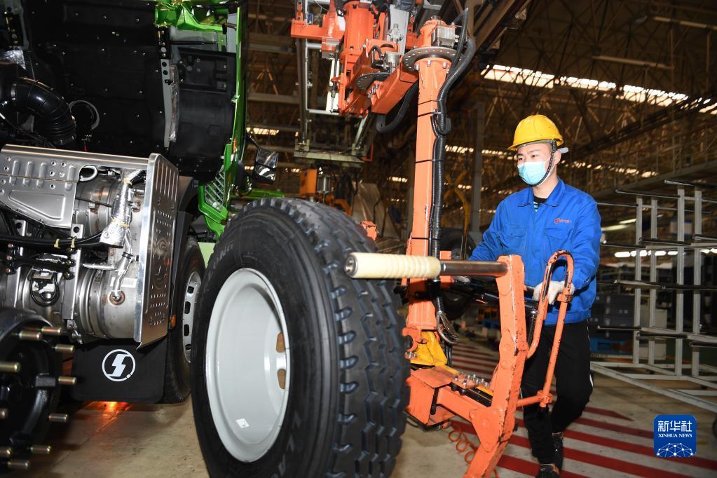 1月20日,工作人員在陜西汽車控股集團(tuán)有限公司總裝車間進(jìn)行重型卡車驗(yàn)收。新華社記者 李一博 攝