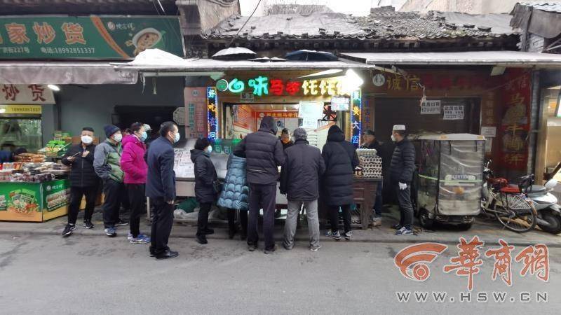 相對于回民街僅有兩三家店開門,而在周邊的大皮院、廟后街上就是另一番景象。多家餐飲店、美食攤不僅復(fù)工營業(yè)甚至門前還排起了長隊。“在家里憋了太久,就饞這一口牛肉泡饃。今天允許大家出門購物了么,就趕飯點(diǎn)前來這大飽口福。”在一家泡饃店門前正排隊的顧客。雖然暫時還不允許堂食,但仍不能阻擋人們對美食的向往,紛紛拎著打包好的美食帶走。