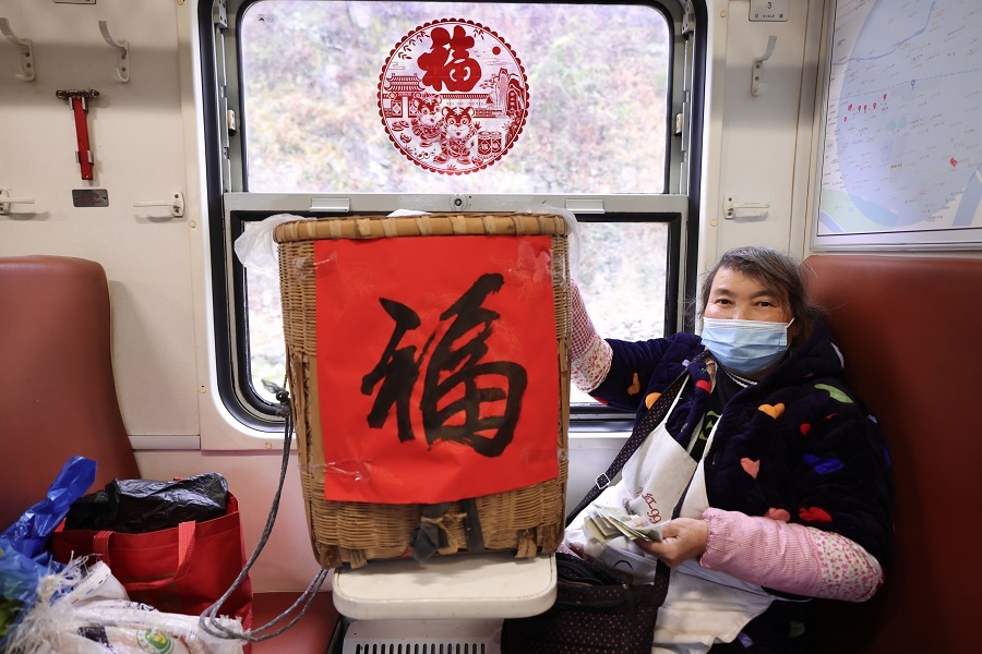列車到達(dá)略陽車站前,早早在車門口等候下車的乘客劉大姐對準(zhǔn)備打開車門組織乘降的列車員衛(wèi)進(jìn)忠開心地說:“今天這趟沒白跑,收到了小慢車送的對聯(lián)和福字,這個年真是吉祥,謝謝你們!”“每年我們都會在小年為老鄉(xiāng)們送上新年祝福,大家的致富路上,小慢車一直都在,從不會缺席。”衛(wèi)進(jìn)忠說。