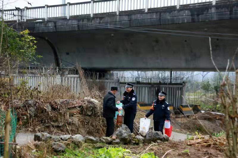 “說起來,這個親戚還是西成高鐵為我們牽的線。”在聊天中王鵬這樣說。原來,2016年12月西成高鐵開通前,為做好高鐵線路的調(diào)研和治安管控工作,安康鐵路警方組建了4支高鐵工作隊開展前期工作,王鵬被選派到寧強南站工作隊擔(dān)任隊長。在工作中,他得知離高鐵線不遠的寧強縣薛家壩村有位76歲的張有學(xué)老人,老人的兒子兒媳常年在廣東打工,他和老伴獨自照顧2個正上小學(xué)的孫女,每天接送2個孫女上下學(xué)都會路過高鐵橋下面的小路。由于張有學(xué)的家正好位于西成高鐵的落地區(qū)段附近,周邊經(jīng)常有孩童玩耍,治安防控任務(wù)艱巨。王鵬帶著民警經(jīng)常到張有學(xué)家走訪,還邀請張有學(xué)協(xié)助進行安全宣傳。一來二去,雙方結(jié)成了“親戚”。每次路過,張有學(xué)會邀請著民警到家喝水、吃飯,王鵬也盡力幫著老人做些家務(wù),輔導(dǎo)張有學(xué)孫女小慧姐妹倆的功課,這一幫就是6年。