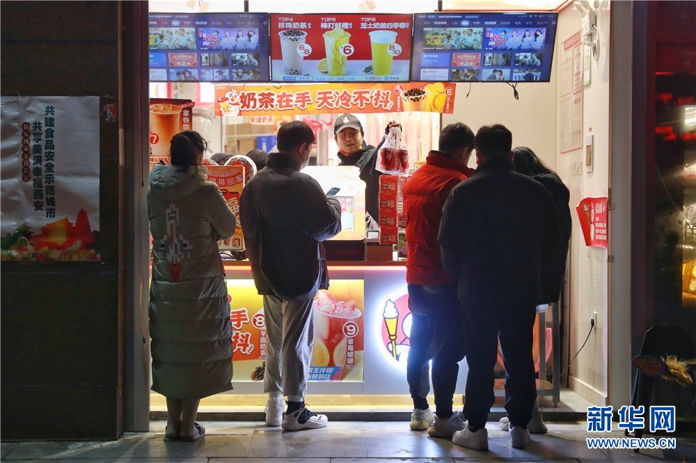 1月25日,在西安市未央?yún)^(qū)一家飲品外,市民正在排隊(duì)購買。新華網(wǎng) 王智超 攝