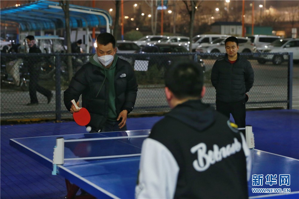 1月25日,在西安市未央?yún)^(qū)一處健身場所,幾名年輕人正在打乒乓球。新華網(wǎng) 王智超 攝
