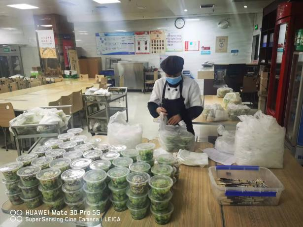 同時,醫(yī)院還成立志愿者送餐服務(wù)隊,為住院患者及陪人提供送餐服務(wù)。餐廳再次完善了送餐流程,明確了餐箱消毒及工作人員防護要求,讓住院患者享受營養(yǎng)健康又熱乎乎的飯菜。隊員中有行政后勤人員、醫(yī)生、護士,他們與餐廳密切合作,確保準(zhǔn)時送達、數(shù)量準(zhǔn)確,為了保證飯菜的溫度,他們加快速度,提高效率,送餐隊員們練就了熟練的推車技術(shù),各個都成了“推車高手”,每一餐一千多份餐食移交完畢,隊員們笑著說“腰都快直不起來了。”但他們沒有一個人叫苦叫累,都說“看到患者吃著熱乎的飯菜,我們覺得每天都是值得的!能為患者服務(wù)好,便是我們對西安抗疫做的最大貢獻。”