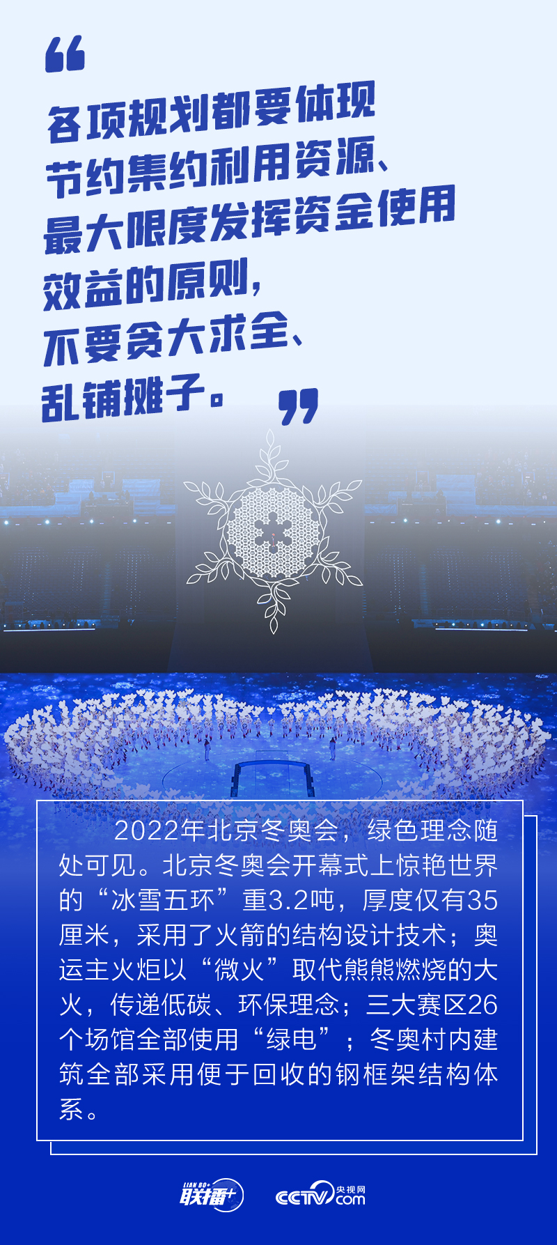 冬奧會(huì)籌辦過程中,總書記始終嚴(yán)格要求把勤儉節(jié)約作為“廉潔辦奧”的重要內(nèi)容。2021年1月20日召開的會(huì)議進(jìn)一步提出要做好簡(jiǎn)化辦賽工作,從實(shí)際出發(fā),精簡(jiǎn)非必要環(huán)節(jié)、活動(dòng)和人員數(shù)量。