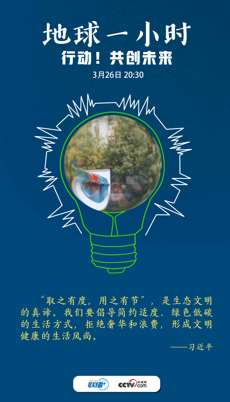 保護地球不止一小時。央視網(wǎng)《聯(lián)播+》梳理總書記相關(guān)論述,邀您一起“節(jié)”盡所“能”,爭當(dāng)?shù)厍蚣覉@呵護者、綠色生活理念傳播者、低碳生活方式踐行者,為建設(shè)綠色新家園多作貢獻。