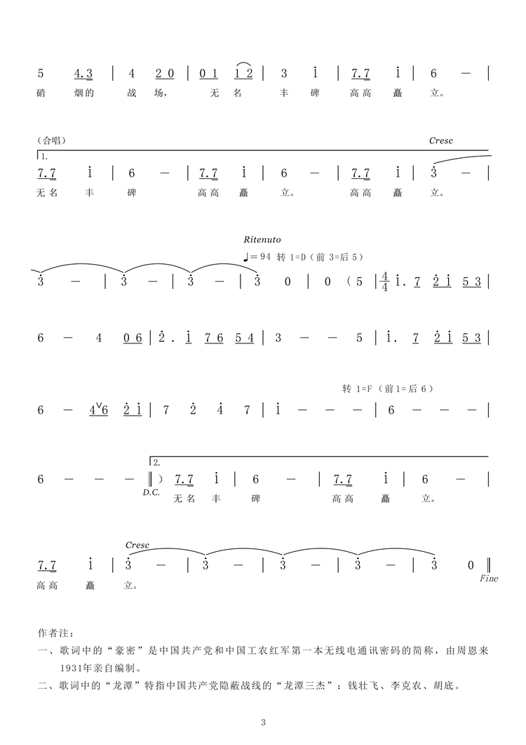 一、A1段歌詞中的“豪密”是中國共產(chǎn)黨和中國工農(nóng)紅軍第一本無線電通訊密碼的簡稱,由周恩來1931年親自編制。