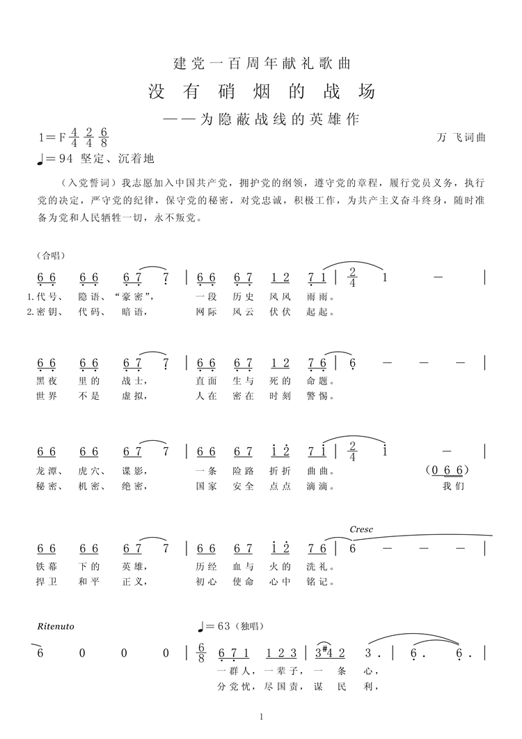 慶祝建黨百年獲獎(jiǎng)歌曲作品選集——《沒有硝煙的戰(zhàn)場(chǎng)》歌詞。