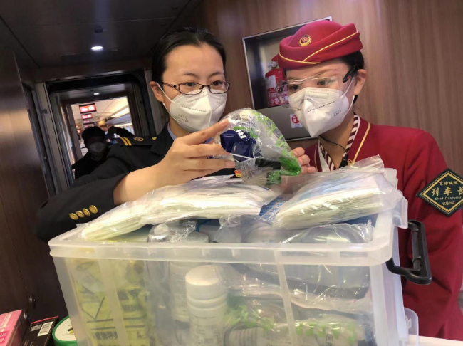 楊珺通常是早上5點(diǎn)剛過,就早早來到天津站站臺(tái),等候登上早上6點(diǎn)半左右的第一班列車檢查乘務(wù)工作。疫情以來,楊珺總是習(xí)慣“早到一點(diǎn)”,充分利用這段“慢節(jié)奏”時(shí)間,靜下心來把近期的重點(diǎn)工作梳理清楚,編輯成微信溫馨提示發(fā)送給即將出乘的班組,方便大家閱讀學(xué)習(xí)。列車一到站臺(tái),楊珺就和出乘的班組一同登上列車,開始了細(xì)致的檢查,車廂衛(wèi)生,備品擺放,物品定型,設(shè)備設(shè)施的狀況,防疫用品的配備,“勞動(dòng)節(jié)假期快要到了,客流量會(huì)比往日增加,這期間我們一定要比平時(shí)更加細(xì)致,像座位扶手、垃圾箱、門把手,只要是旅客頻繁接觸的位置,都必須逐一落實(shí)消毒要求……”每走到一個(gè)車廂,楊珺都會(huì)一遍又一遍地叮囑,并且和乘務(wù)員一起落實(shí)所在區(qū)域的重點(diǎn)安全工作。