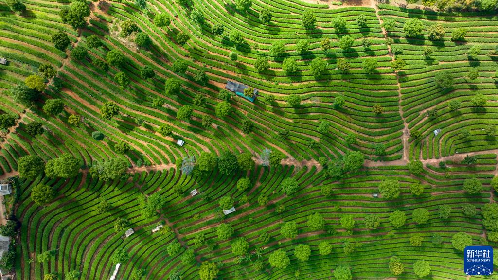 云南普洱市思茅區(qū)南屏鎮(zhèn)整碗村的有機茶葉基地(5月13日攝,無人機照片)。新華社記者江文耀攝