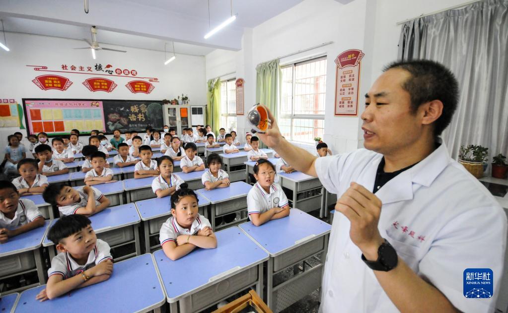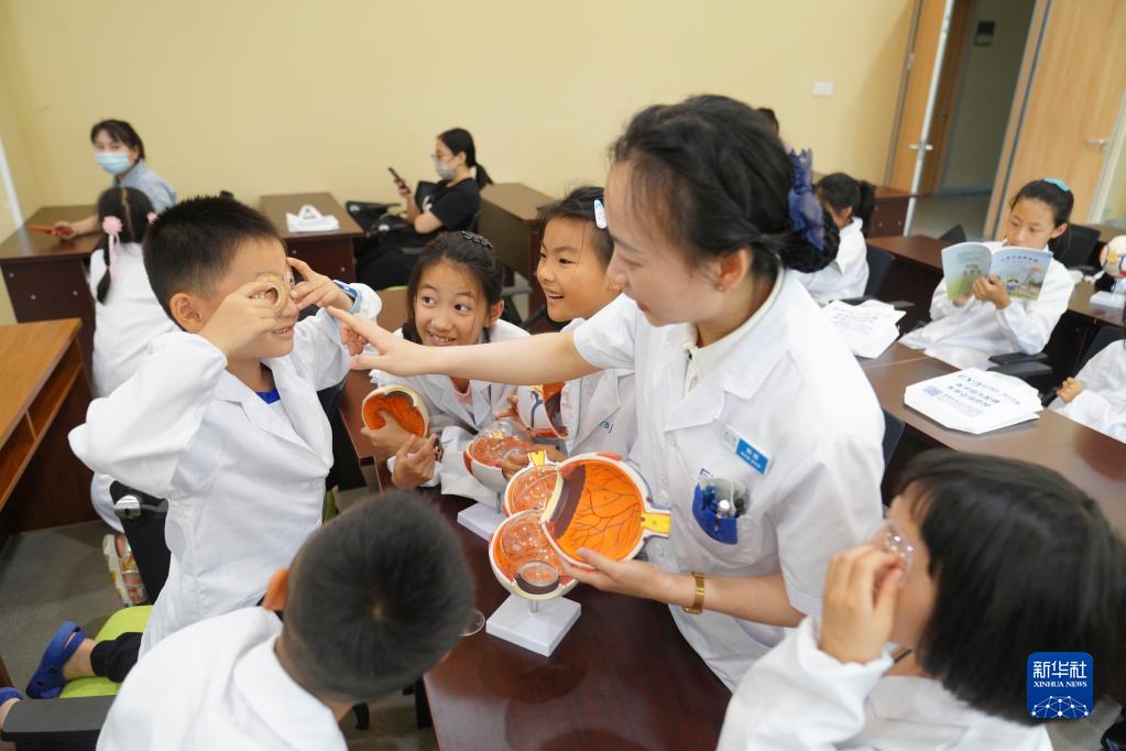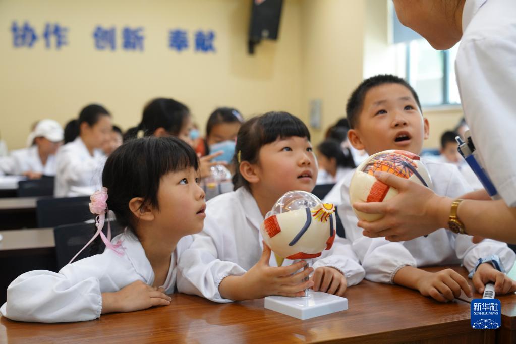 6月5日,河南省濟源市一家眼科醫(yī)院的醫(yī)生為沁園路小學的學生講解眼科知識。新華社發(fā)(苗秋鬧 攝)