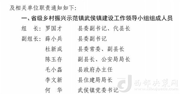 西部決策網(wǎng)訊自2021年11月武侯鎮(zhèn)被確定為文化旅游類省級鄉(xiāng)村振興示范鎮(zhèn)以來,在市縣各級部門的大力支持下,鎮(zhèn)黨委、政府高度重視,迅速成立示范鎮(zhèn)建設(shè)工作專班,整合資源協(xié)同推進(jìn)示范鎮(zhèn)建設(shè)。