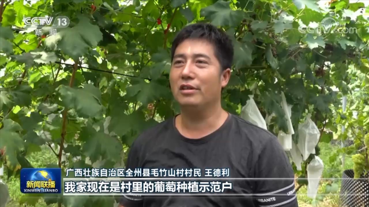 廣西壯族自治區(qū)全州縣毛竹山村村民 王德利:去年總書記來我們家,囑托我們注重學(xué)習(xí)科學(xué)技術(shù),用知識托起鄉(xiāng)村振興。我家現(xiàn)在是村里的葡萄種植示范戶,去年光葡萄一項,我家就收入10多萬元。