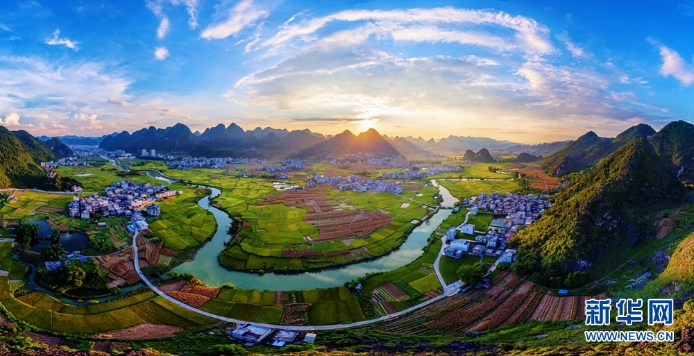 航拍馬山縣城。新華網(wǎng)發(fā) 江海榮攝