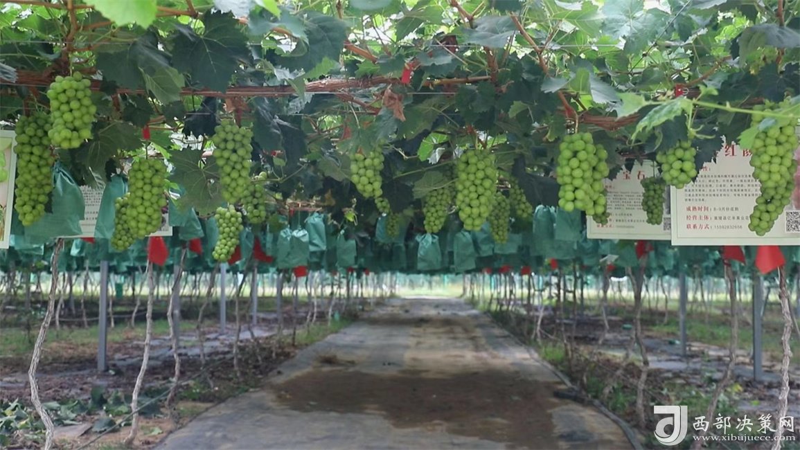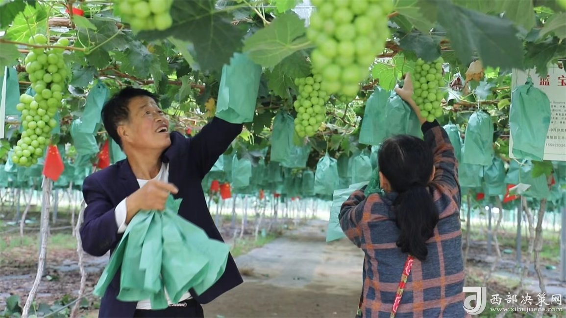西部決策網(wǎng) 初秋時節(jié),來到黃陵縣阿黨鎮(zhèn)北村億豐玫瑰葡萄園內(nèi),滿園的豐收景象,禁不住讓人喜上眉梢。藤架上,一串串晶瑩剔透的果實透著陽光的味道,令人口舌生津、垂涎欲滴,咬一顆放進口中,香甜的汁液溢滿舌尖,幸福的甜蜜充滿周身……