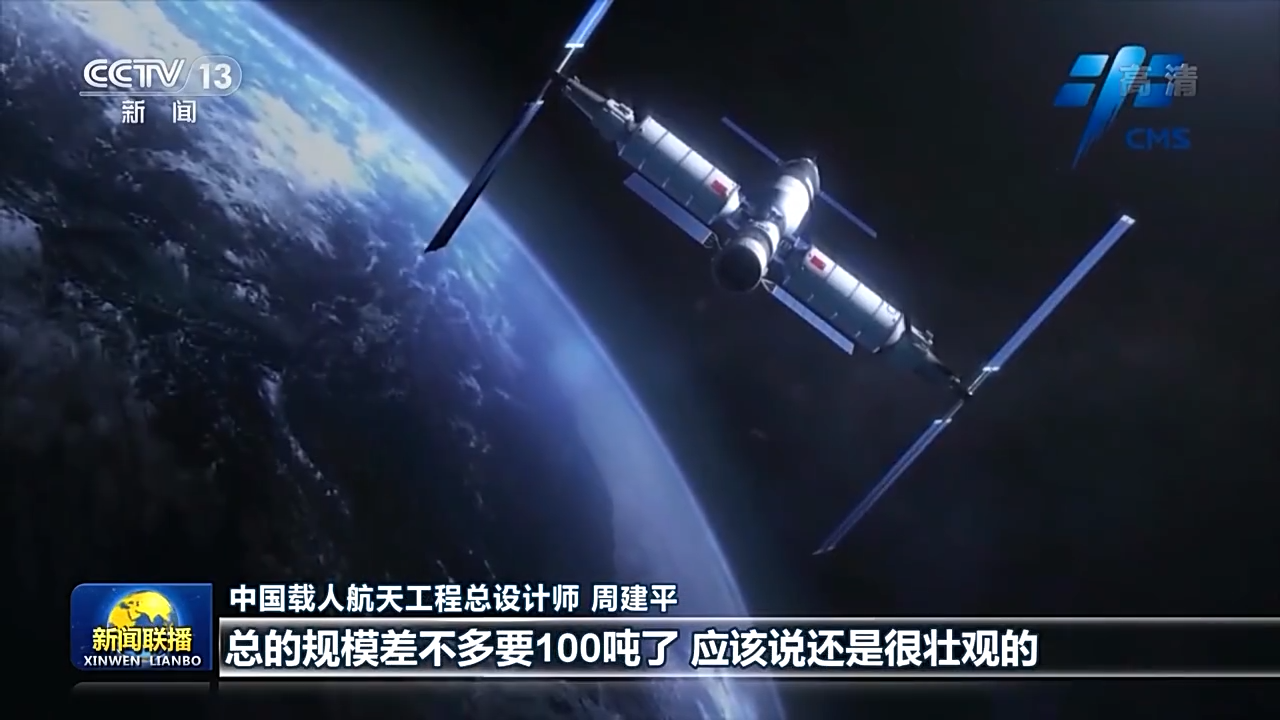 中國載人航天工程總設(shè)計師 周建平:總書記一直把航天強(qiáng)國建設(shè),作為實(shí)現(xiàn)中華民族偉大復(fù)興中的一個重要的組成部分。中國空間站最大構(gòu)型就是三艙三船,總的規(guī)模差不多要100噸,應(yīng)該說還是很壯觀的。