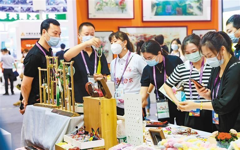 編織、刺繡、剪紙、干貨、果蔬、果酒……9月15日,第29屆楊凌農(nóng)高會(huì)B館的巾幗科技助農(nóng)暨特色產(chǎn)業(yè)成果展廳里,琳瑯滿目的婦女手工藝品和種類多樣的農(nóng)副產(chǎn)品吸引著八方來客。