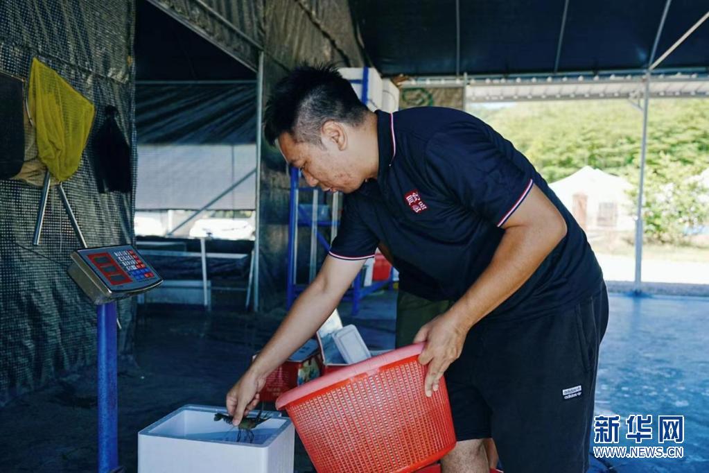 張銘華將小龍蝦稱重。新華網(wǎng)發(fā) (張羲輪 攝)