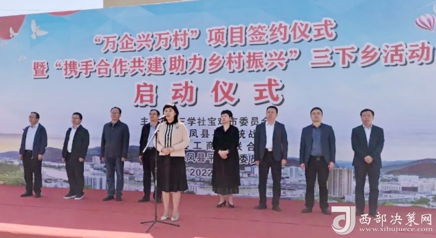 西部決策網(wǎng)訊 9月28日,為進(jìn)一步落實(shí)全市黨派工作協(xié)同協(xié)商會(huì)議精神,九三學(xué)社寶雞市委、鳳縣工商聯(lián)“萬(wàn)企興萬(wàn)村”項(xiàng)目簽約儀式暨“攜手合作共建 助力鄉(xiāng)村振興”三下鄉(xiāng)活動(dòng)啟動(dòng)儀式在鳳縣平木鎮(zhèn)隆重舉辦。 寶雞市人大常委會(huì)副主任、九三學(xué)社寶雞市委主委車(chē)爽,鳳縣人大常委會(huì)主任劉淳,中共寶雞市委統(tǒng)戰(zhàn)部班子成員、二級(jí)調(diào)研員毛建錄,中共鳳縣縣委常委、統(tǒng)戰(zhàn)部部長(zhǎng)吳海濤,九三學(xué)社寶雞市委副主委兼秘書(shū)長(zhǎng)郭紅全、副主委李獻(xiàn)軍,中共寶雞市委統(tǒng)戰(zhàn)部黨派科科長(zhǎng)湛玉忠,鳳縣平木鎮(zhèn)黨委書(shū)記張紅利、鎮(zhèn)長(zhǎng)鄧振宇,鳳縣工商聯(lián)主席陳強(qiáng)參加簽約儀式和三下鄉(xiāng)啟動(dòng)儀式。活動(dòng)儀式由郭紅全副主委主持。