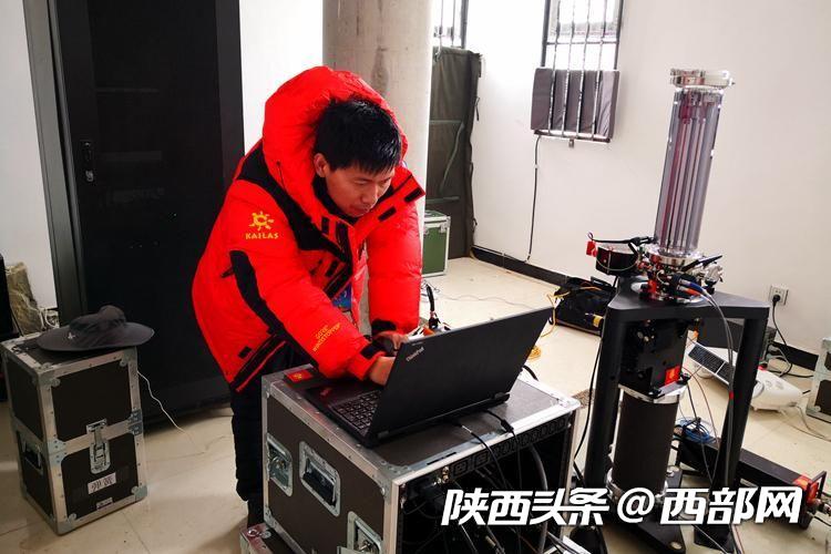趙丕正在操作測(cè)量設(shè)備。