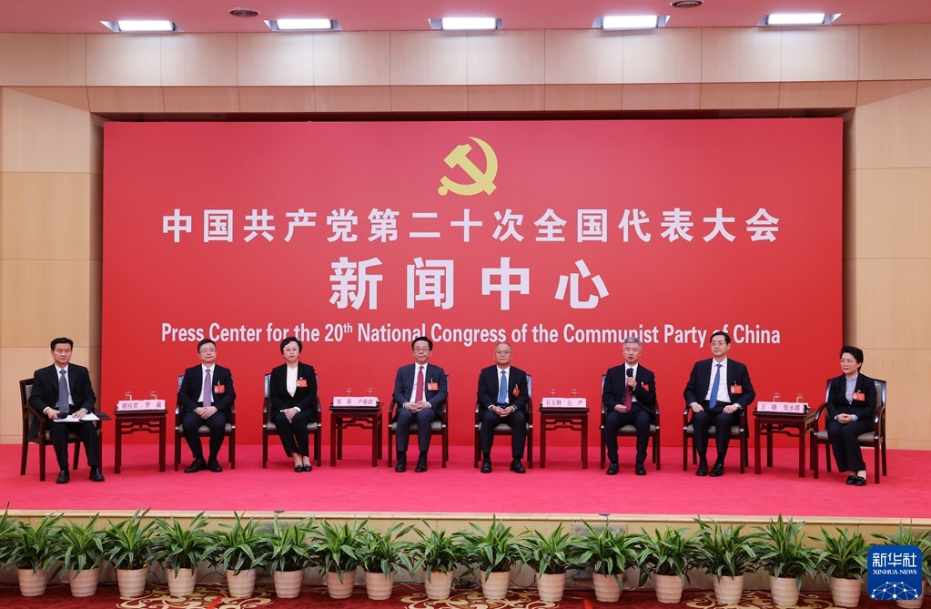10月19日,中國共產(chǎn)黨第二十次全國代表大會新聞中心舉行集體采訪。重慶、四川、貴州、云南、西藏、陜西、甘肅代表團新聞發(fā)言人出席,介紹代表團學(xué)習(xí)討論二十大報告情況,并回答記者提問。新華社記者 張玉薇 攝