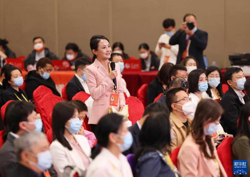 這是記者在分會場舉手提問。新華社記者 李明 攝