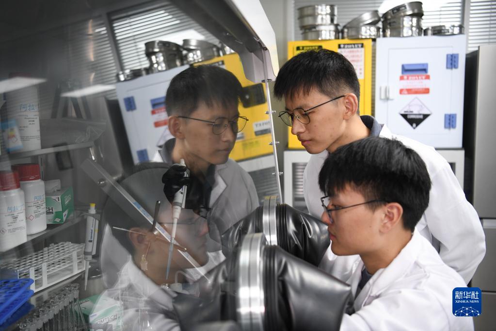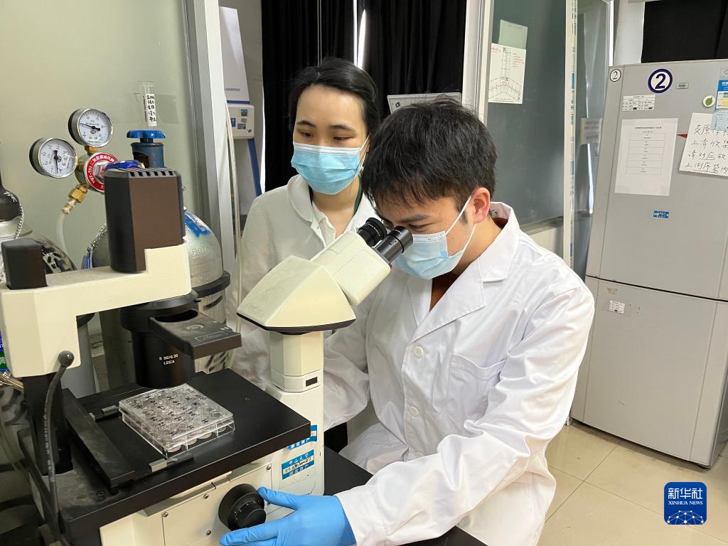 10月20日,廣東中山大學(xué)中山醫(yī)學(xué)院博士研究生張賢濤(右)在實(shí)驗(yàn)室。新華社發(fā)