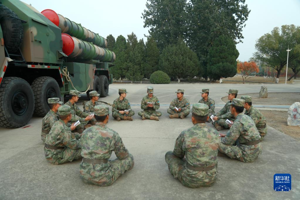 中共中央總書記、國家主席、中央軍委主席習近平24日下午出席軍隊領導干部會議時發(fā)表的重要講話,在解放軍和武警部隊引起強烈反響。這是中部戰(zhàn)區(qū)空軍“模范地空導彈營”開展“鳴鏑講堂”交流活動,積極組織官兵學習習主席重要講話(10月25日攝)。新華社發(fā)(趙勝之 攝)