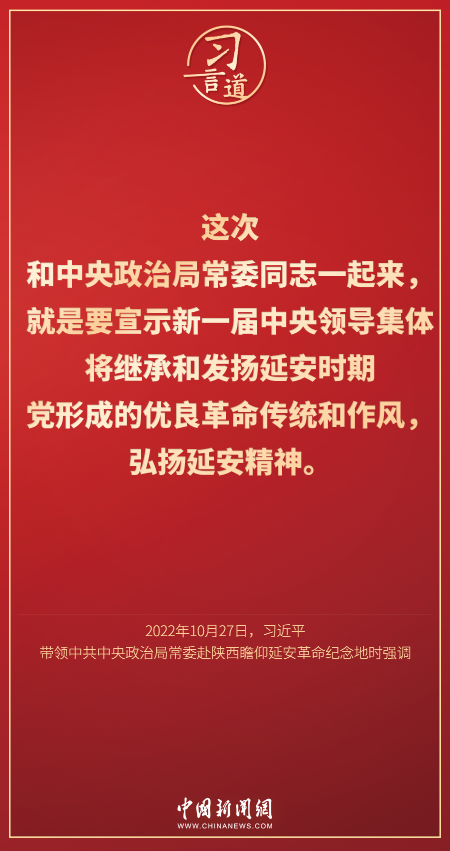 黨的二十大閉幕不到一周,中共中央總書記、國(guó)家主席、中央軍委主席習(xí)近平帶領(lǐng)中共中央政治局常委李強(qiáng)、趙樂際、王滬寧、蔡奇、丁薛祥、李希,專程從北京前往陜西延安,瞻仰延安革命紀(jì)念地。此行中,習(xí)近平多次談到延安精神——