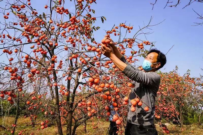 2022年10月底,驪山腳下,臨潼區(qū)代王街道山任村,紅彤彤的火晶柿子在霜降節(jié)氣來(lái)臨之際掛滿枝頭,群眾正在采摘(央廣網(wǎng)發(fā) 王三合 攝)