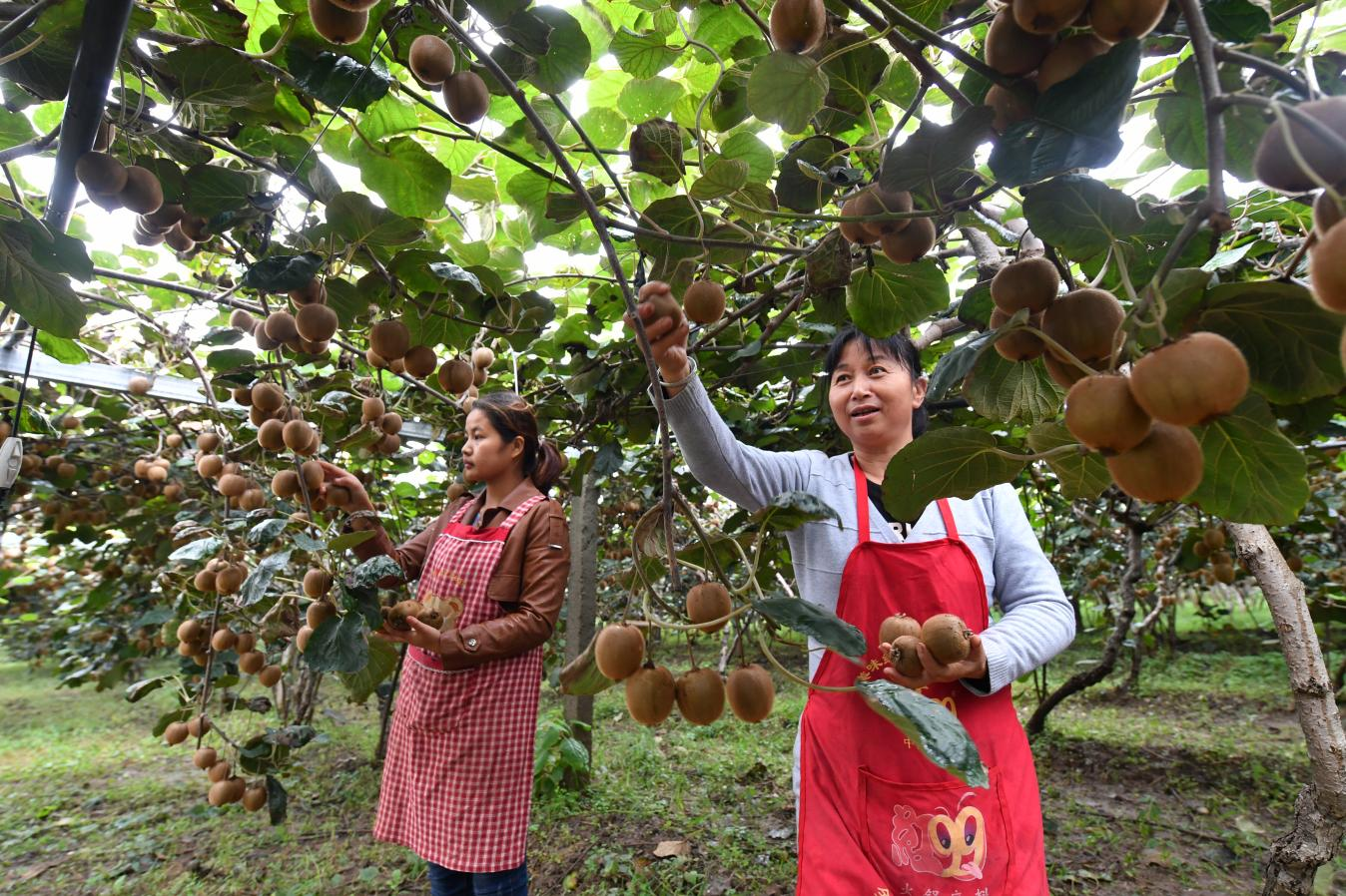 西安市周至縣果農(nóng)正在地里采摘獼猴桃 (央廣網(wǎng)發(fā) 周宣 攝)