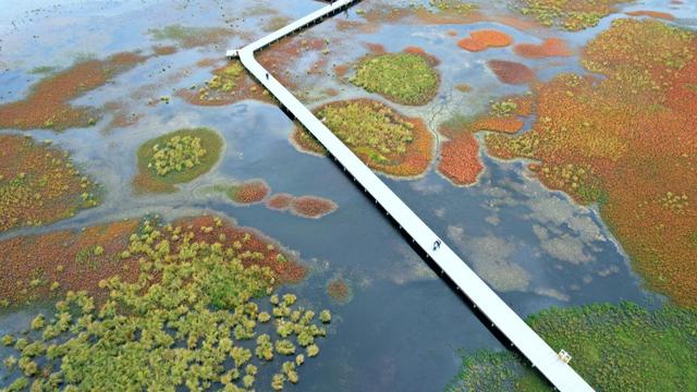 隨著季節(jié)變換,花湖湖面呈現(xiàn)出五顏六色、色彩斑斕的景色,因此而得名。進入花湖生態(tài)旅游區(qū),不僅可以將天水相連的草原濕地原始自然風光盡收眼底,還可以欣賞到人與大自然和諧相處的美好畫面,每當被稱為“鳥類大熊貓”的