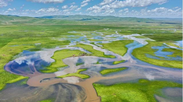 濕地河水充盈,草木豐美。時卷時舒的層云將陰影投在大自然鬼斧神工造就的草原上,成群的牛羊、鹿群以及盤旋高空的蒼鷹,還有珍稀動物