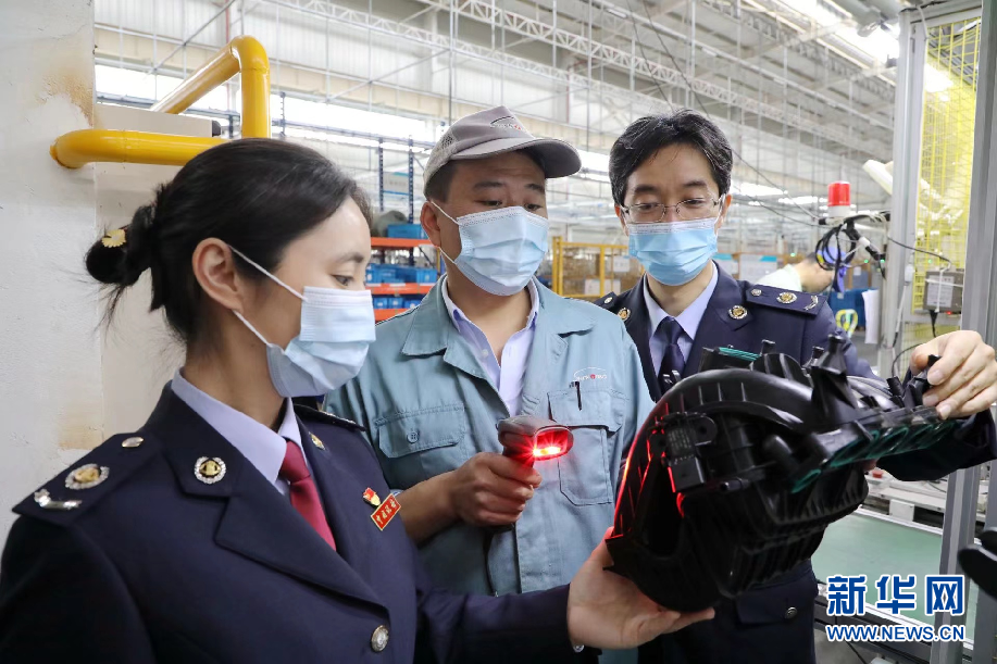 稅務(wù)人員在神通科技集團(tuán)股份有限公司廠區(qū)了解產(chǎn)品情況。新華網(wǎng)發(fā)