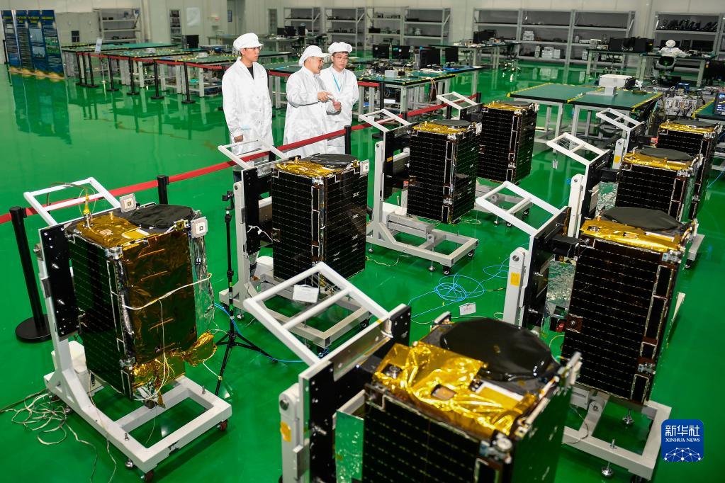 在吉林長春,長光衛(wèi)星技術(shù)股份有限公司科研人員在衛(wèi)星總裝測試大廳進(jìn)行相關(guān)測試工作 (2022年10月17日攝)。新華社記者 許暢 攝