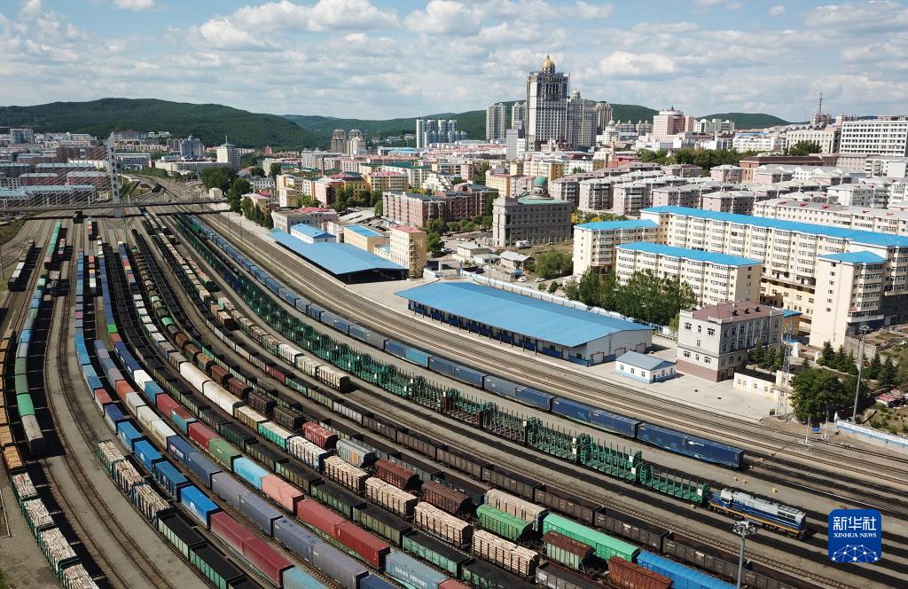 2022年6月8日拍攝的中國(黑龍江)自由貿(mào)易試驗區(qū)綏芬河片區(qū)局部(無人機(jī)照片)。新華社記者 王建威 攝