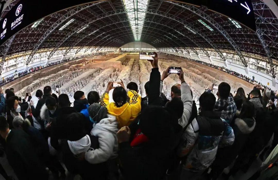 1月23日(大年初二),秦始皇帝陵博物院迎來了最大承載量,來自全國各地的觀眾參觀熱情高漲,該院內(nèi)外重現(xiàn)了久別的客流高峰。兵馬俑園區(qū)人山人海,熙熙攘攘,觀眾都在有序排隊進(jìn)行參觀。13時,秦始皇帝陵博物院已經(jīng)達(dá)到最大承載量,所有門票售罄,院方充分感受到了大家的熱情。